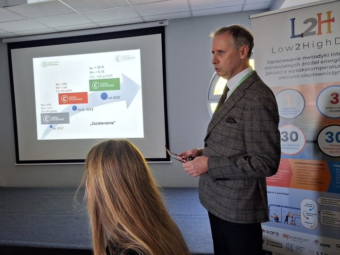 Partnerzy projektu, w ramach wizyty studyjnej, mieli okazję zapoznać się z instalacjami kotłowni gazowej, biomasowej i węglowej, które wchodzą w skład rydułtowskiego systemu ciepłowniczego. W spotkaniu, którego organizatorem była Krajowa Agencja Poszanowania Energii S.A. – polski partner projektu Low2High – brali udział m.in.: władze Miasta Rydułtowy oraz reprezentanci spółdzielni mieszkaniowych i organizacji pozarządowych. Prelegenci zapoznali uczestników spotkania z wymogami wynikającymi z unijnych dyrektyw dotyczących efektywności energetycznej systemu ciepłowniczego, jak również efektywności samych budynków. Efektem projektu ma być wskazanie rozwiązania technicznego i finansowego zapewniającego racjonalną transformację energetyczną, uwzględniającą dalsze ograniczanie paliw kopalnych wykorzystywanych w rydułtowskim systemie ciepłowniczym poprzez odpowiednie dostosowanie źródeł ciepła oraz stopniowe obniżanie parametrów pracy sieci ciepłowniczej i węzłów cieplnych. Dzięki inwestycjom w system ciepłowniczy odbiorcy ciepła będą mogli znacząco ograniczyć, a w niektórych przypadkach całkowicie uniknąć kosztów związanych z dostosowaniem swoich obiektów do wymogów unijnej dyrektywy o efektywności energetycznej budynków. W najbliższych latach wszystkich nas czekają kolejne wyzwania w zakresie ograniczania emisji poprzez podnoszenie efektywności energetycznej. Liczymy, że dzięki projektom takim jak Low2High, transformacja energetyczna będzie dla nas – dostawcy i odbiorców ciepła systemowego – łatwiejsza.